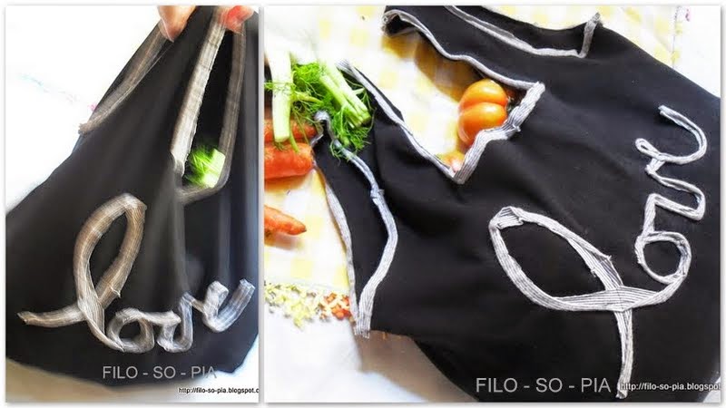 Le tue "piccole" sperimentazioni sono sempre grandi cose. Le borse per la spesa riciclate ad esempio sono una più bella dell'altra. Molto carina anche questa con scritta a contrasto. A casa tua ogni cosa si trasforma in un'altra...apprezzo molto la tua fantasia ed il senso del risparmio. Ciao, Pia!
