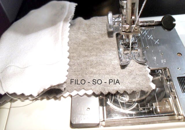 Taglio (sempre a zig zag) e piego a metà una striscia di maglina e poi la chiudo con due cuciture sui fianchi, ma sul diritto del lavoro.