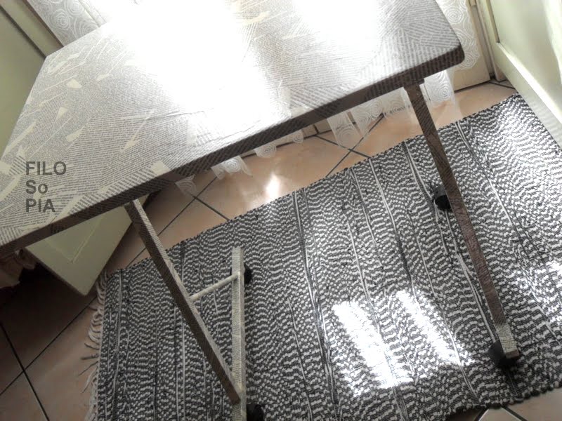 E' delizioso il tuo nuovo tavolino! Ecco a cosa ti son servite le pagine del libro.....li per lì ho pensato che stessi realizzando altro (delle lettere per comporre qualche bella parola, da appendere al muro!). Anche io ho sciupato un po' la superficie del tavolo e del banco con i miei lavori....ma poi ho riparato! In fondo si tratta di oggetti di Piero che per lui sono un caro ricordo...quindi non me la sono sentita di intervenire se non con prodotti adatti al legno, per ripristinare....l'originale! Se fosse stato mio, avrei fatto come te! :)